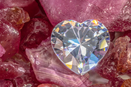 close up heart shaped diamond on raw Ruby Rough Gemstones