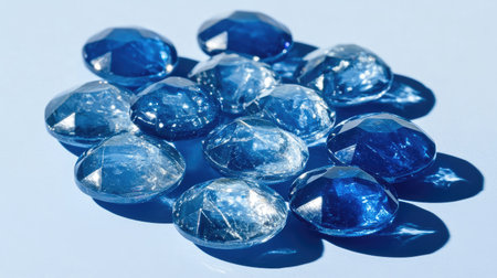 A beautiful arrangement of blue gemstones showcasing their vibrant color and shiny facets. Ideal for decorative purposes or artistic projects.