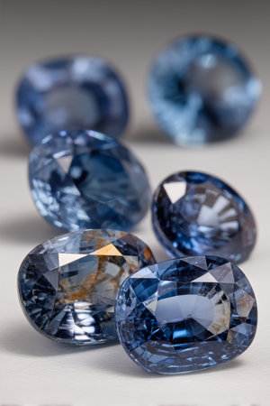 A captivating close-up of a blue sapphire gemstone showcasing its brilliant facets and rich color. Highlighting luxury and elegance, this image is perfect for jewelry themes.