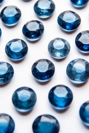 Sparkling Blue Sapphire Gemstones Arranged on a White Background, Luxury Concept, Macro Viewpoint