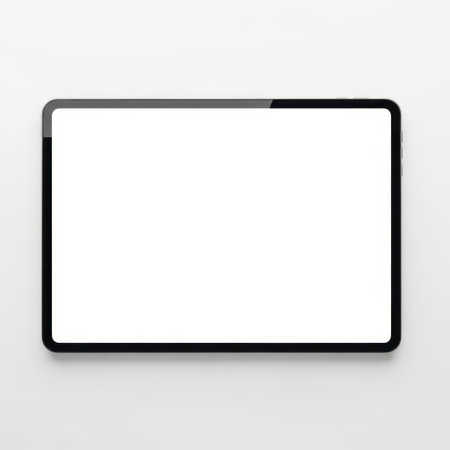 This image features a blank tablet screen with a sleek, modern design, isolated on a transparent background. The tablet has a white screen surrounded by a thin black border, making it ideal for various digital and tech-related projects. The image is clear and SEO-friendly, perfect for web design and graphic design applications.