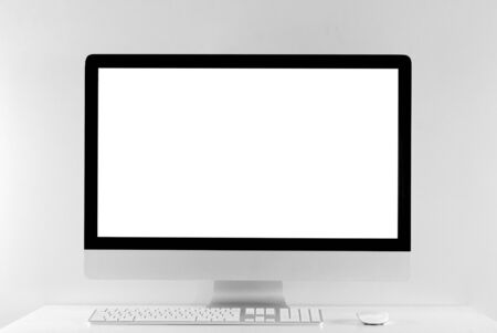 modern computer monitor template mock up on white and clean work desk with blank screen