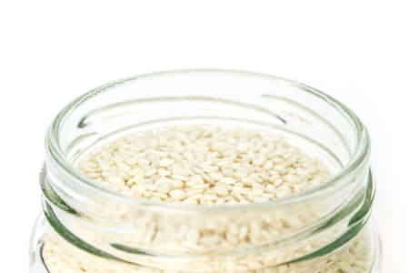 sesame in a jar on white background