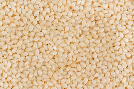 Macro kernels of white roasted sesame seeds.
