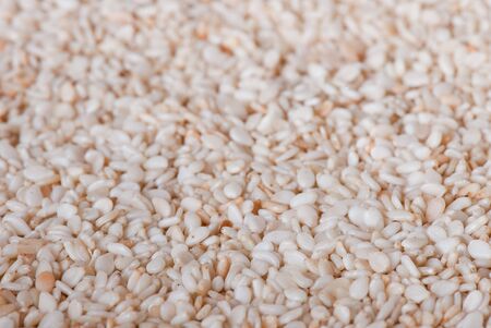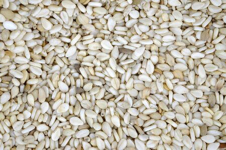 Close up of white sesame seeds food background