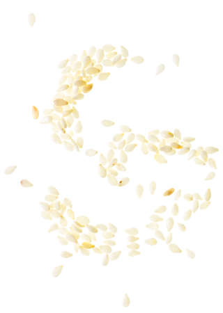 Sesame seeds scattered and isolated on white background