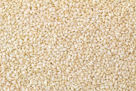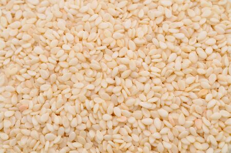 Closeup background texture photo of White sesame seeds with natural color
