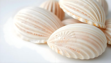 Generative AI Image of Shell Clam with Light and Shadow on Empty Blank White Background