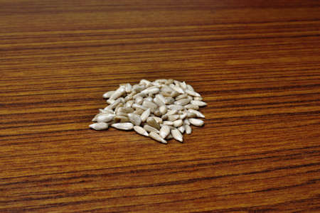 Dry pumpkin seed on wood desk. Health food