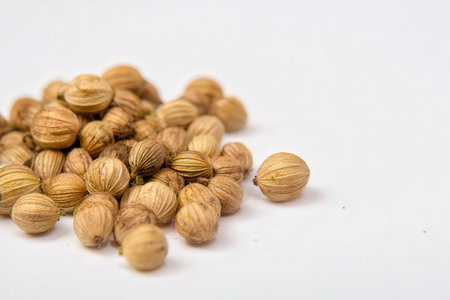 Coriander seeds isolated on white background with copy space for your text.