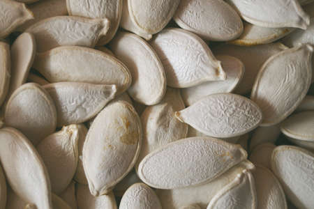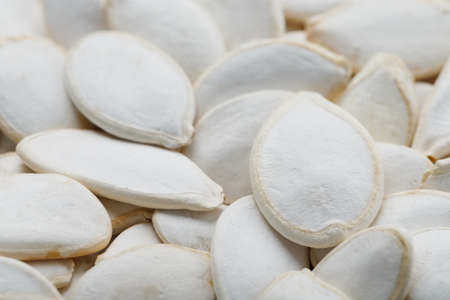 White raw in shell pumpkin seeds close-up background