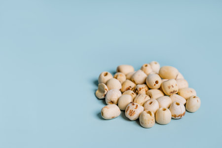 Dried lotus seeds on a blue background