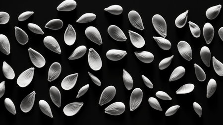 This close-up image showcases an arrangement of black and white seeds resting on a soft surface, highlighting intricate textures and natural beauty.