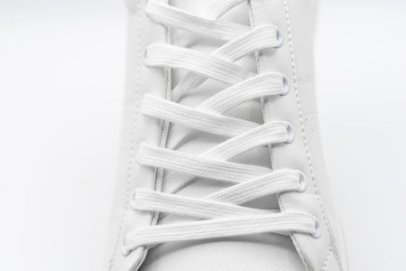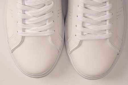 Pair of white sneakers on white surface sporty footwear for outdoor activities