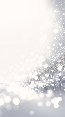 Silver-white glitter texture features tiny crystal-like sparkles and a frosted air-diffusion effect, evoking a serene winter wonderland ambiance with copy space