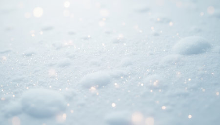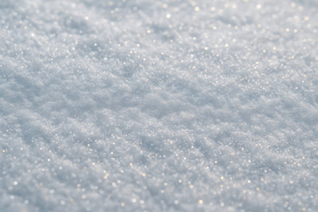 A close-up image showing the sparkling surface of fresh snow under bright sunlight