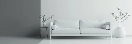interior modern bright room with white sofa 3D rendering illustration computer generated image