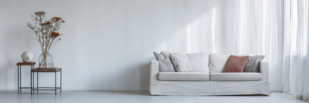 Minimalist interior design composition with minimal decor, neutral colors and copyspace for text.