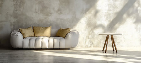 minimal clean interior design of living room with sofa, generative art by A.I.