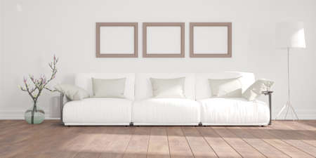 interior with white sofa, 3d render, 3d illustration