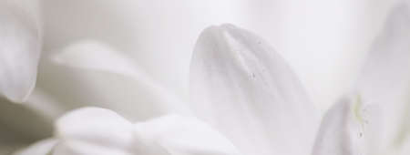 Close-up of delicate white flower petals set against a soft, pale background. The petals appear smooth and layered, banner. Copy space