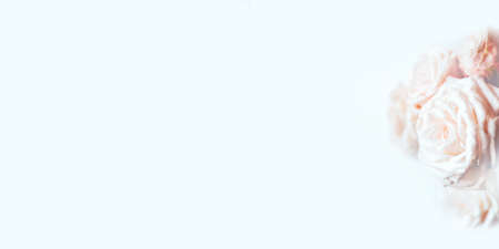 Delicate pastel background with blooming roses. Spring or summer time. Copy space for text.