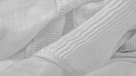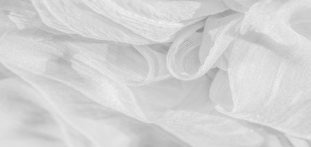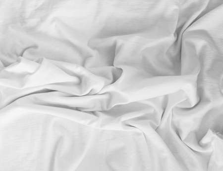 Silk fabric. The texture of the white wrinkled fabric. White wrinkled, wavy surface texture.