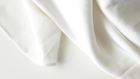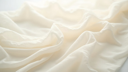 Blurred white fabric displaying smooth folds and soft curves, exuding a sense of calm and elegance. Ideal for backgrounds and minimalist designs.