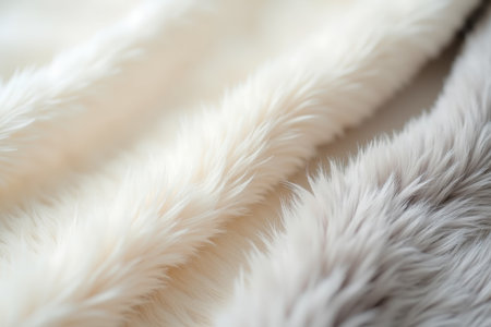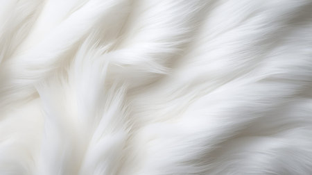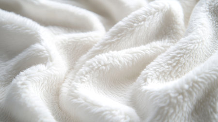 Close-up of luxurious plush white fur close-up, inviting warmth and softness.
