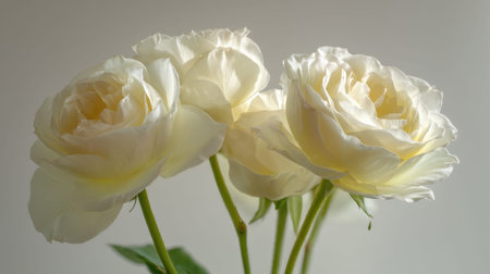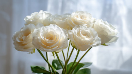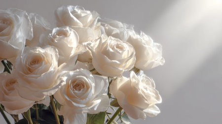 A delicate bouquet of white roses brings elegance and beauty, illuminated by soft natural light, perfect for romantic settings or stylish decorations.