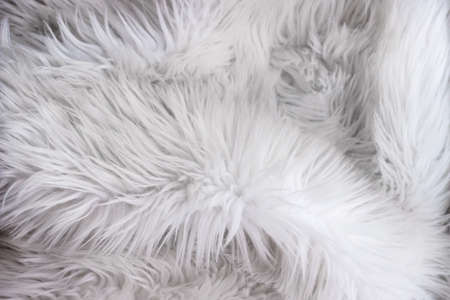 Close up of white faux fur texture. background. Soft cozy textile.