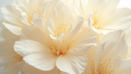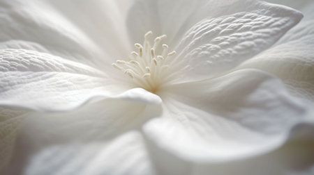 A detailed macro shot of white flower petals illuminated by soft, natural light, AI-generated.