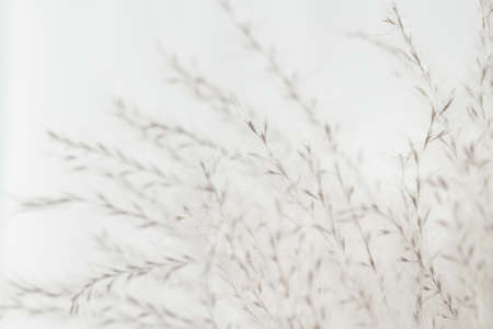 Beautiful beige dried fluffy romantic flowers with seeds floral invitation, postcard or wallpaper on light background macro