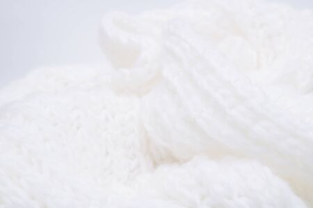 Ivory color crochet sweater on white background. Texture detail close up. High key lighting
