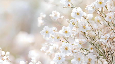 Beautiful close-up of delicate white blossoms against a soft background. This serene floral composition captures the essence of springtime beauty and tranquility.