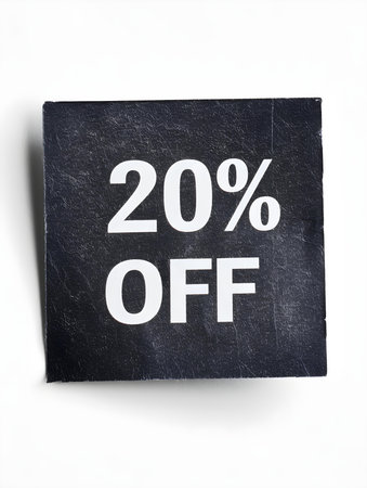 White '20% OFF' Text on an Anthracite Square Paper Note. White Background