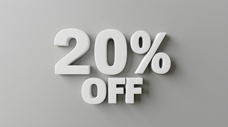 White '20% OFF' Promotional Sign on a White Background with Copy Space