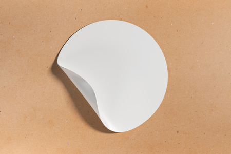 Blank round sticker on brown kraft paper background.