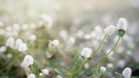 Selective focus Gomphrena globosa flower in garden, soft focus, shallow depth of field