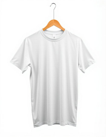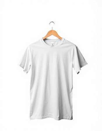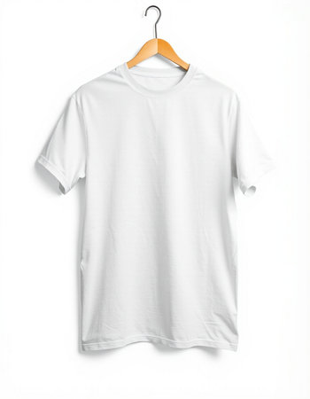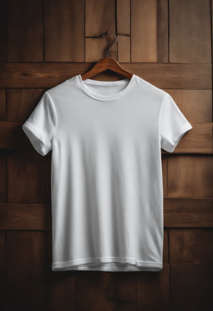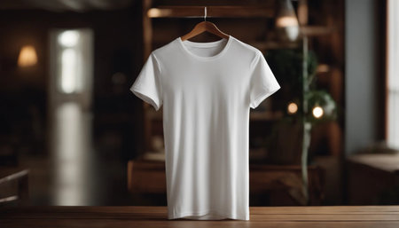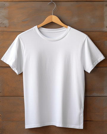 white t-shirt on wooden hanger. White tshirt mockup template. ai generated