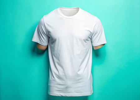 White t-shirt on a turquoise background, front view