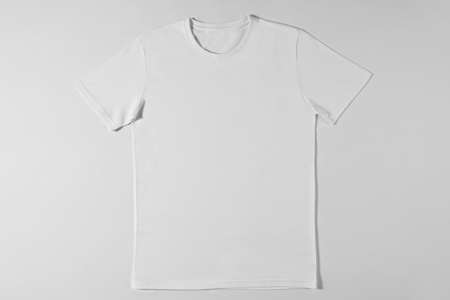 Plain white cotton T-shirt on light grey background