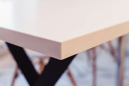 Table corner, Sharp desk edge, Home accident from furniture, White table with hard angle, Minimal style and copyspcae for wording.