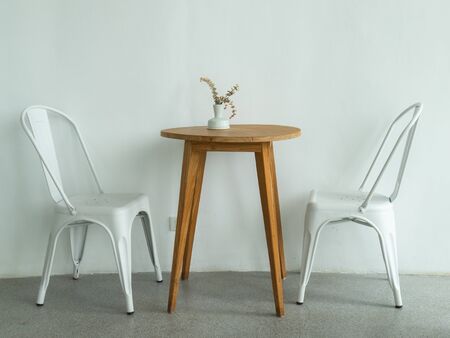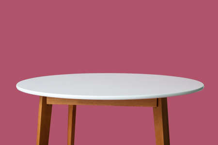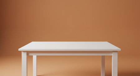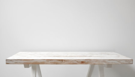 High-quality image featuring a simple wooden white table set against a clean white wall, ideal for product displays, ecommerce mockups, or minimalist photography backgrounds with versatile uses.