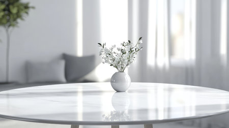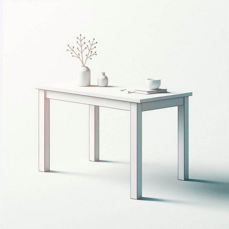 modern white table top illustration sleek elegant, bright detailed, sharp polished modern white table top