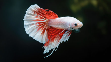 This stunning betta fish showcases a beautiful blend of red and white fins, swimming gracefully in its aquatic environment. Perfect for nature lovers!