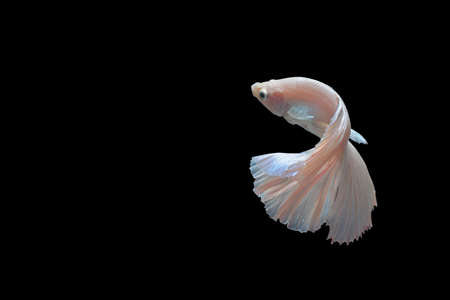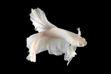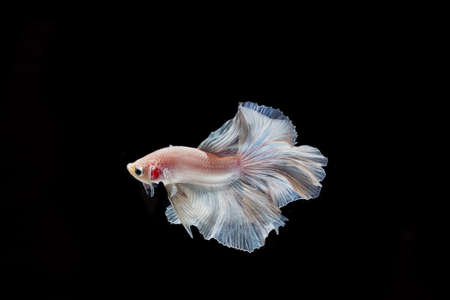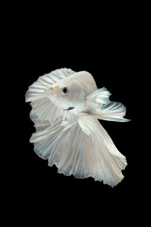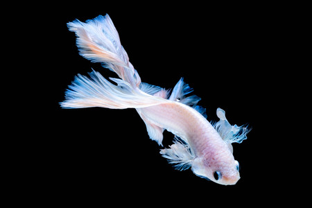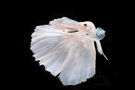 moving moment of white siamese fighting fish isolated on black background