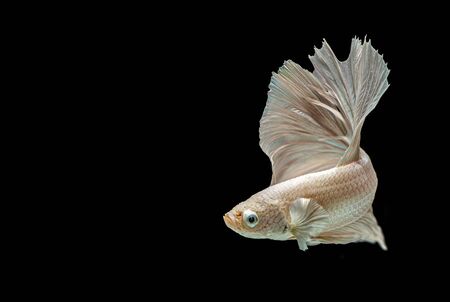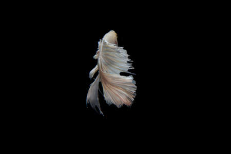 White Yellow Beautiful Crown Tail, Serit, Slayer, Half Moon pineapple Cupang, Betta, siamese fighting fish, Isolated on Black