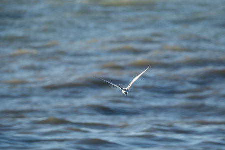 A bird in flight Chlidonias leucopterus, leucoptera, White-winged Tern