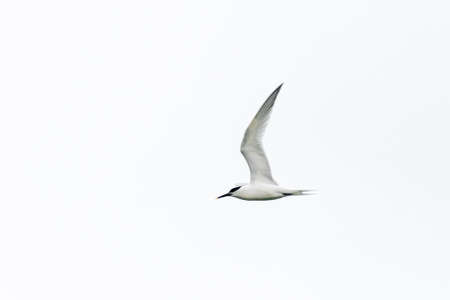A river tern flying in bald sky